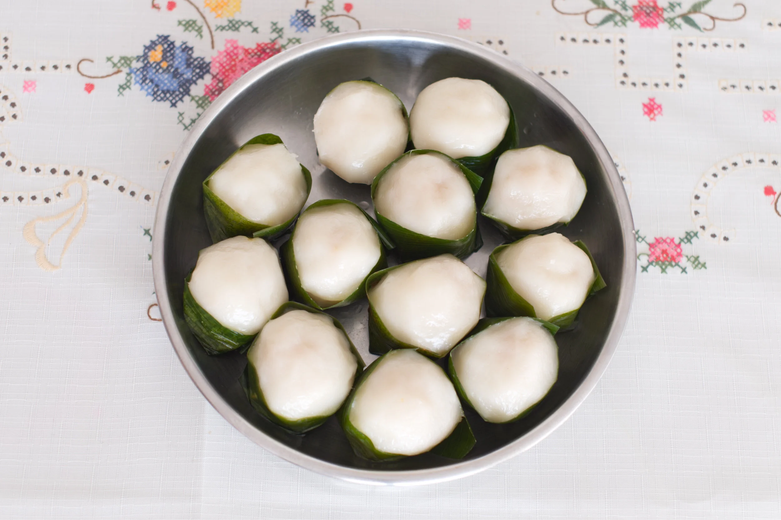This dish can be made both savory and sweet. If it was savory, my mom would use the same filling as Chaozhou Dumplings 粉果 fan gwo. But I asked her to make a sweet version which is filled with roasted peanuts and coconut. For the sweet version, there are other fillings so this isn’t the only combination for it.